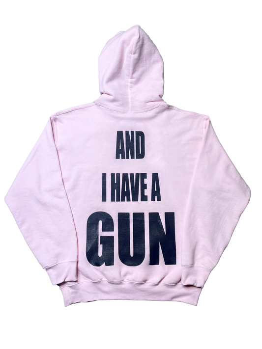 Twink Retard Faggot And I Have A Gun Hoodie LIGHT PINK *PREORDER* HARDCORE THOUGHTS X JUNA COLLAB